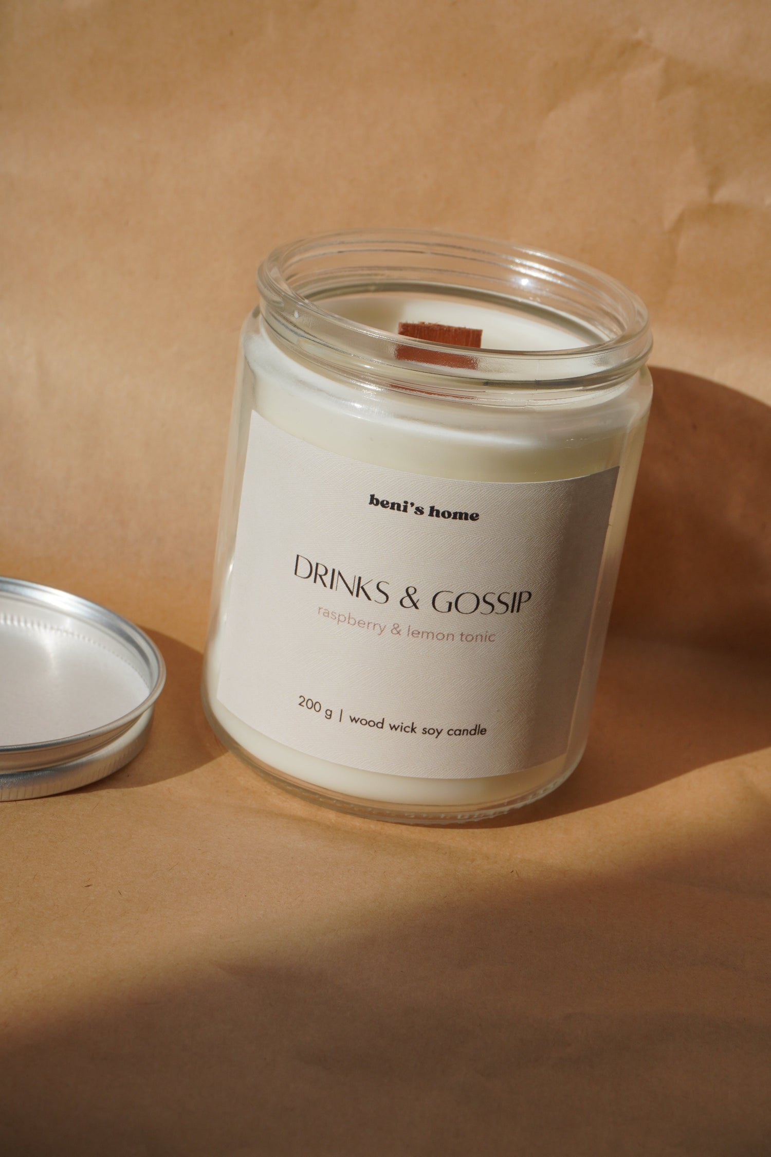 Minimal glass jar candles with soft neutral labels and comforting scents for...