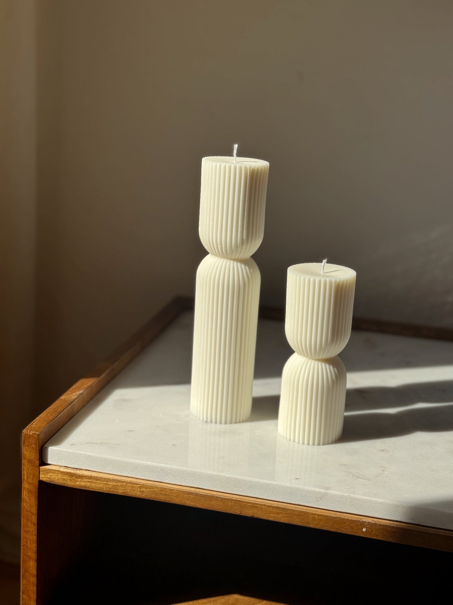 Sculptural unscented pillar candles designed as statement pieces for modern home decor.Luxury...